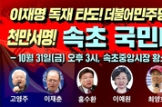 자유대한을 지키는 마지막 방파제동부전선 애국 고장 속초에서 이재명 독재 타도! 더불어민주당 해산! 「천만서명 국민대회」 개최! 10월 31일(금) 오후 3시속초 중앙시장 황소 동상 앞 이재명 독재정권의 폭주를 막고헌정질서를 지키기 위한 국민의 함성이 울린다! 주요 연사고영주 자유민주당 대표, 이재춘 전 러시아 대사, 홍수환 전 챔피언, 이예원 대표, 최영호 본부장, 연태웅 청년대표 등 “더불어민주당 해산하라!”“이재명 공범 김현지 파면하라!” 서울 출발 버스 신청: 010-3620-5142(참가비 5만원 / 저녁식사 제공) 대한민국의 자유민주주의가 중대한 갈림길에 서 있다. 법과 정의를 무너뜨리고, 헌정질서를 농단하며, 국민의 뜻을 짓밟는 이재명 독재정권과 더불어민주당의 폭정에 맞서기 위해 국민들이 다시 거리로 나선다. 자유민주당(대표 고영주)과 위헌정당해산국민운동본부(위국본. 상임대표 이재춘 전 러시아 대사)는 오는 10월 31일(금) 오후 3시, 속초 중앙시자 황소동상 앞에서 ‘이재명 독재 타도! 더불어민주당 해산! 천만서명 속초 국민대회’를 개최한다. 이번 집회는 동부전선 애국도시인 속초·고성·양양·인제·강릉을 중심으로 자유시민들이 자발적으로 모여 헌법