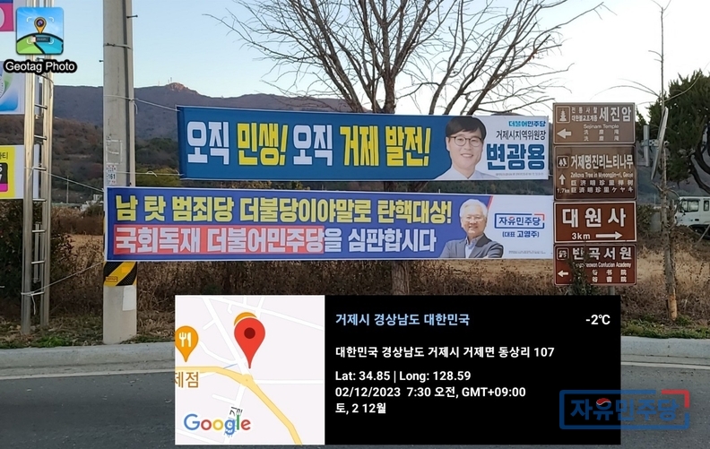 [거제시 장평로 - 변광용 더불어민주당 거제시위원장 현수막 위]