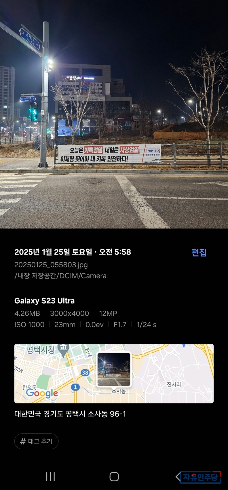 경주 용강 네거리 진보당 현수막 위