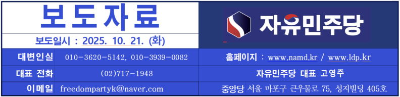 【자유민주당 긴급성명】 - 2025. 10. 21.