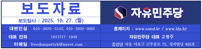 자유민주당은 이미 여러 차례 성명서를 통해 이재명 정권과 더불어민주당의 헌정파괴 행위를 강력히 규탄해왔다.