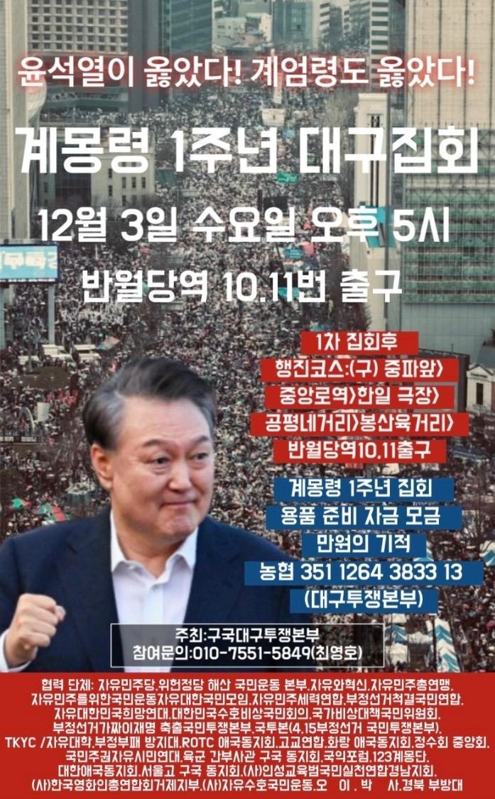 12월 3일, 대한민국의 자유를 위해, 대구에서 뵙겠습니다.