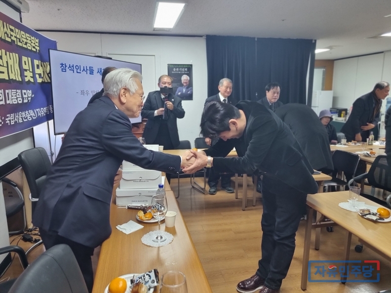 오후에는 서울 마포구 자유민주당 중앙당사에서 신년 단배식이 열렸다. 단배식은 국민의례를 시작으로 신년사, 2026년 주요 활동 계획 보고, 참석자 새해 인사 및 건배 순으로 진행됐다.