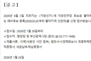 [공고] 2026 지방선거 출마 예비후보 등록 안내 및 신청 접수