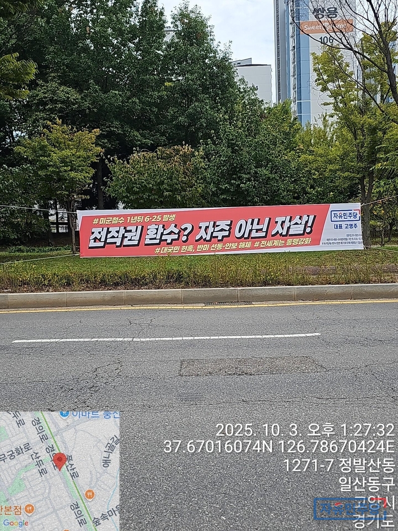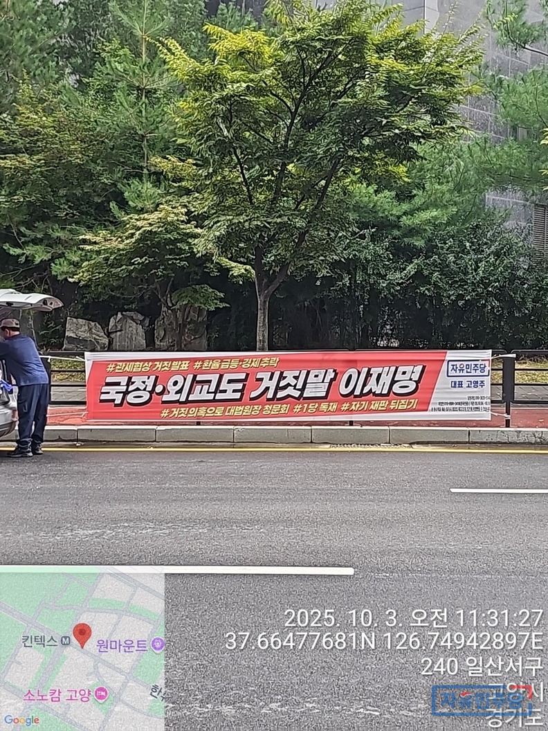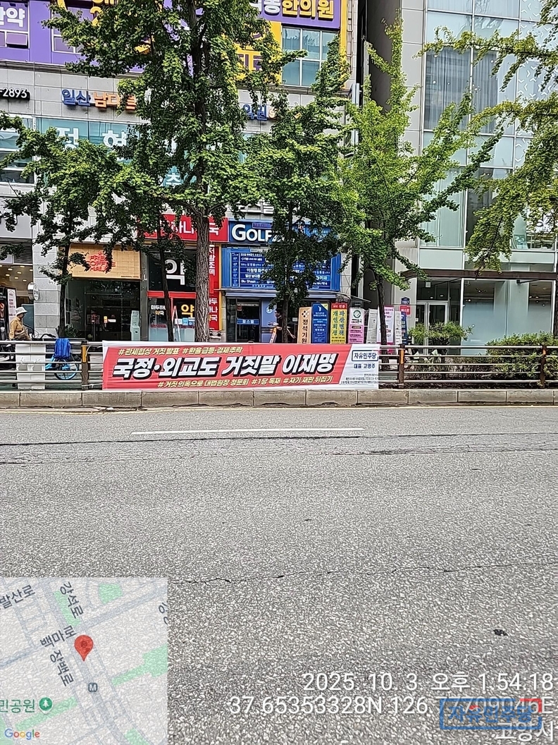 <일산신도시 24곳>“국정·외교도 거짓말 이재명” 현수막 투하!
