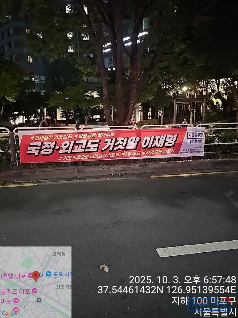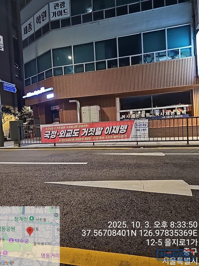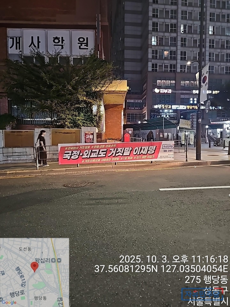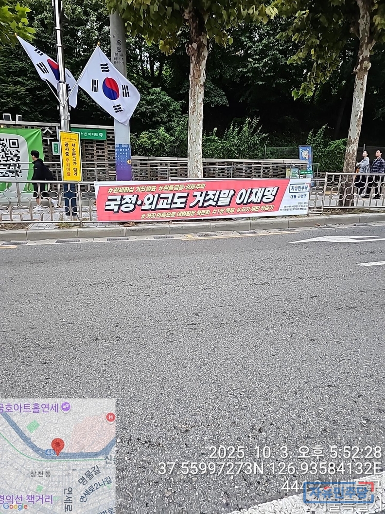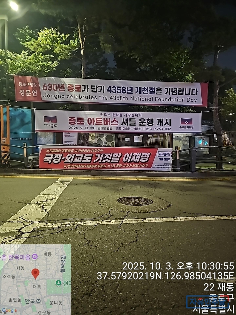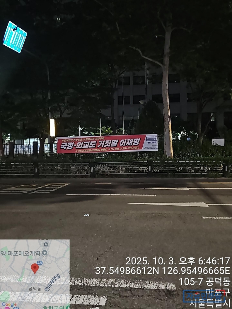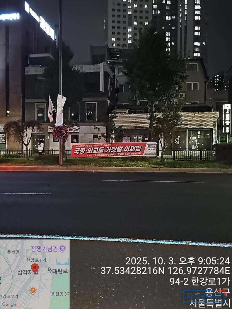 <서울 도심,강북 55곳 현수막> "국정.외교도 거짓말 이재명" "전작권 환수? 자주 아닌 자살!" 투하!