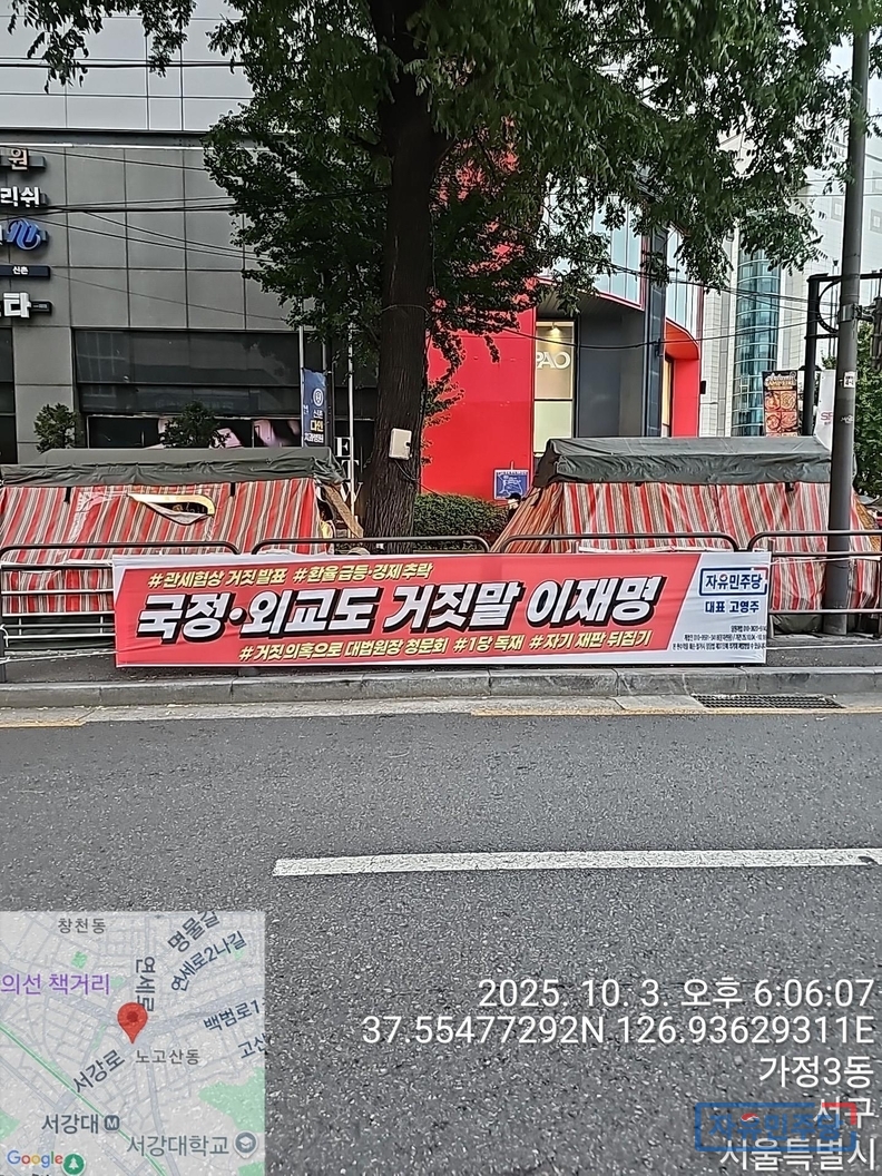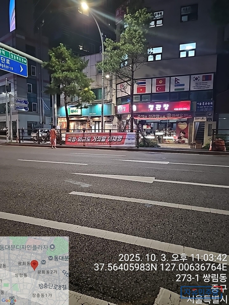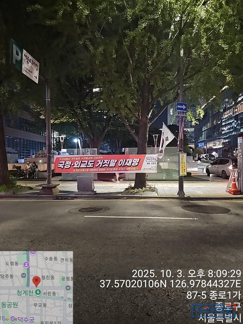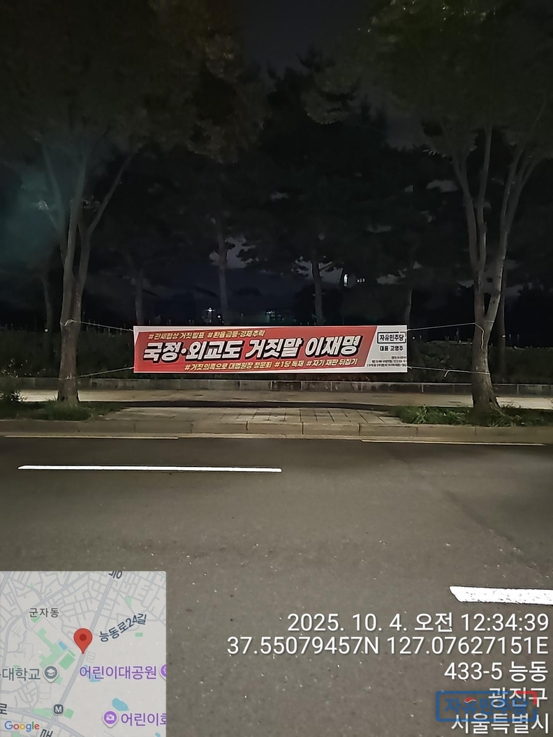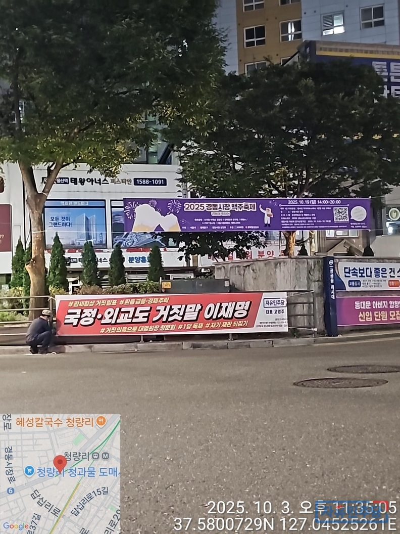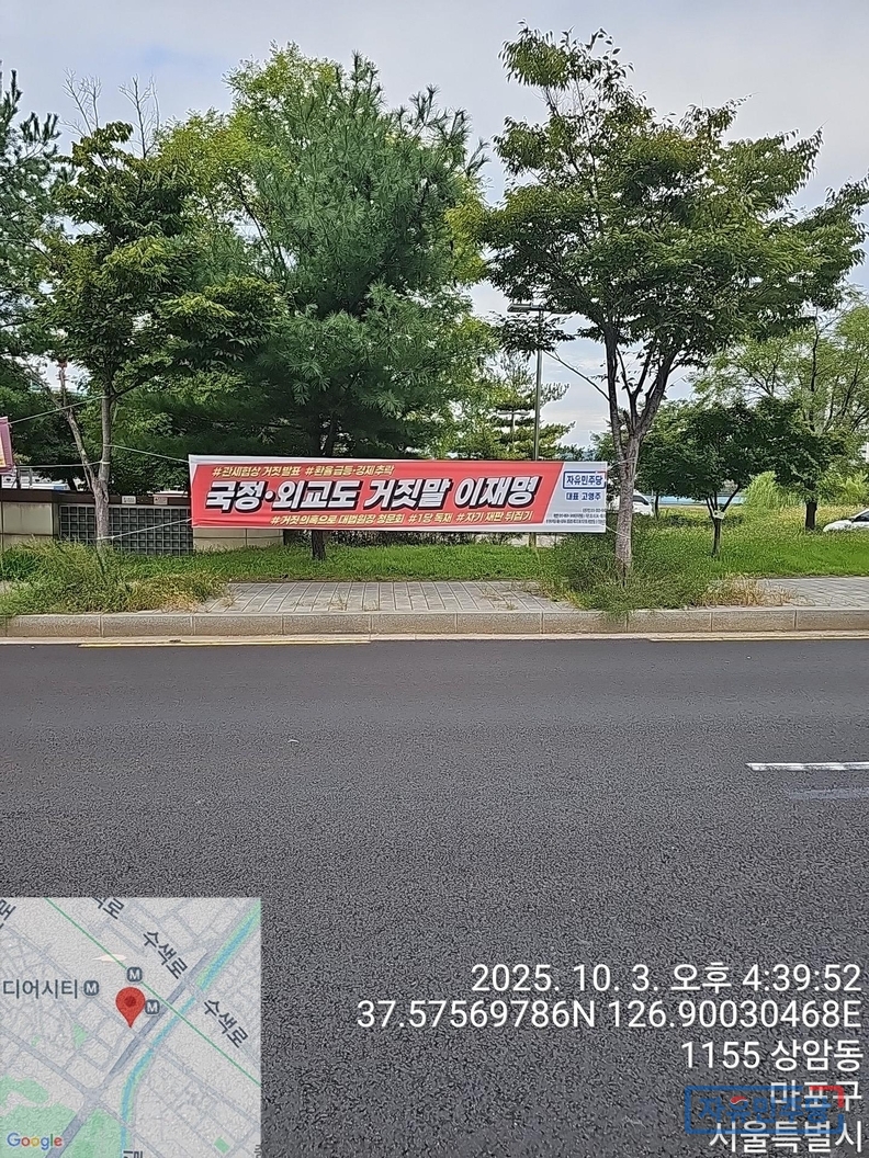 <서울 도심,강북 55곳 현수막> "국정.외교도 거짓말 이재명" "전작권 환수? 자주 아닌 자살!" 투하!