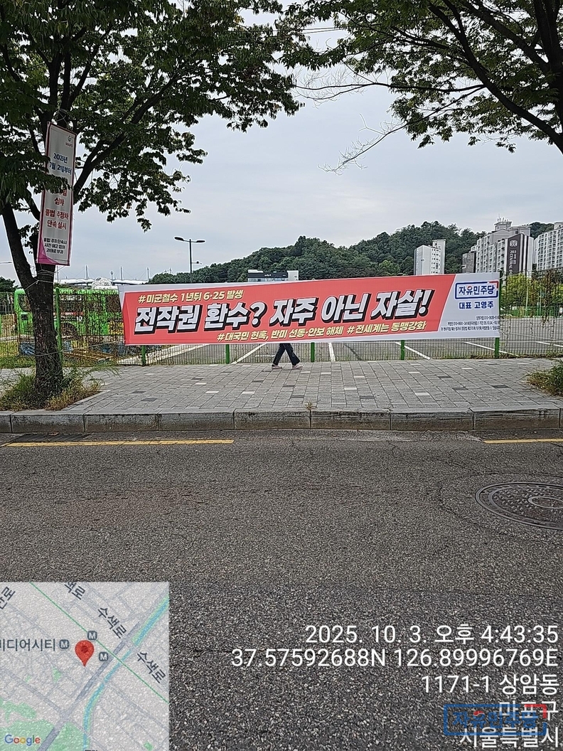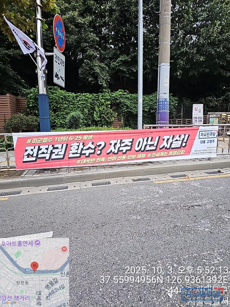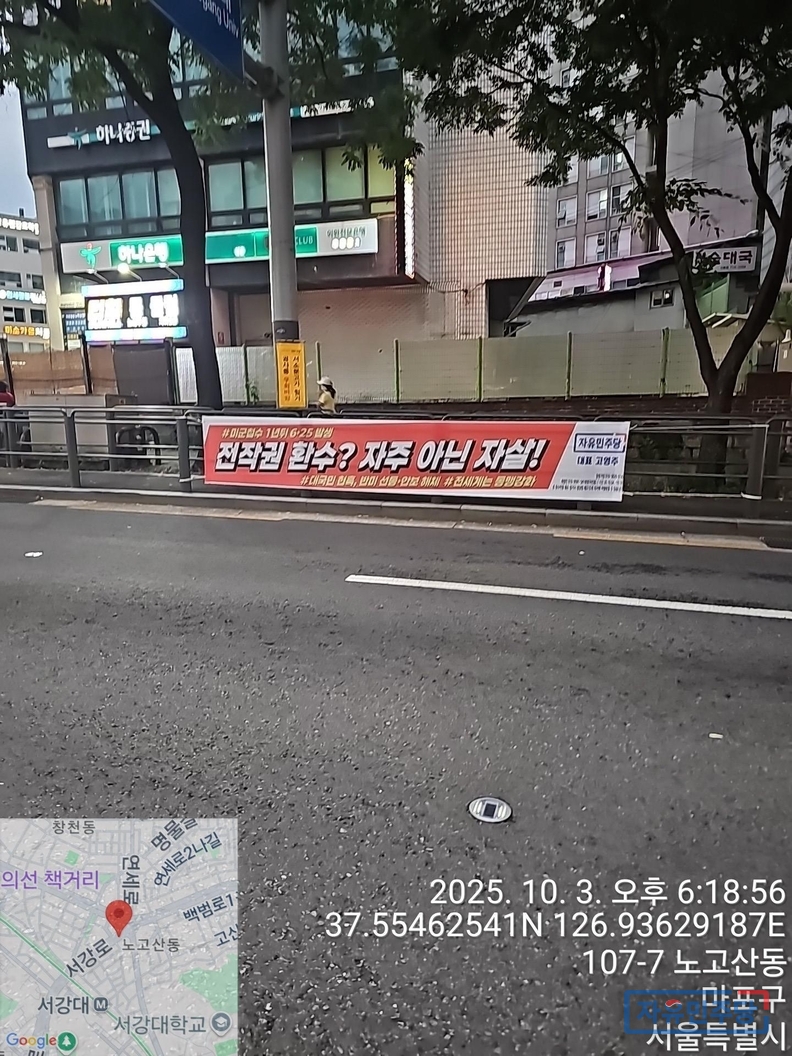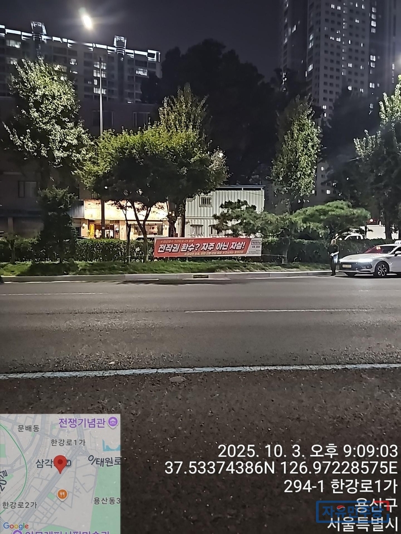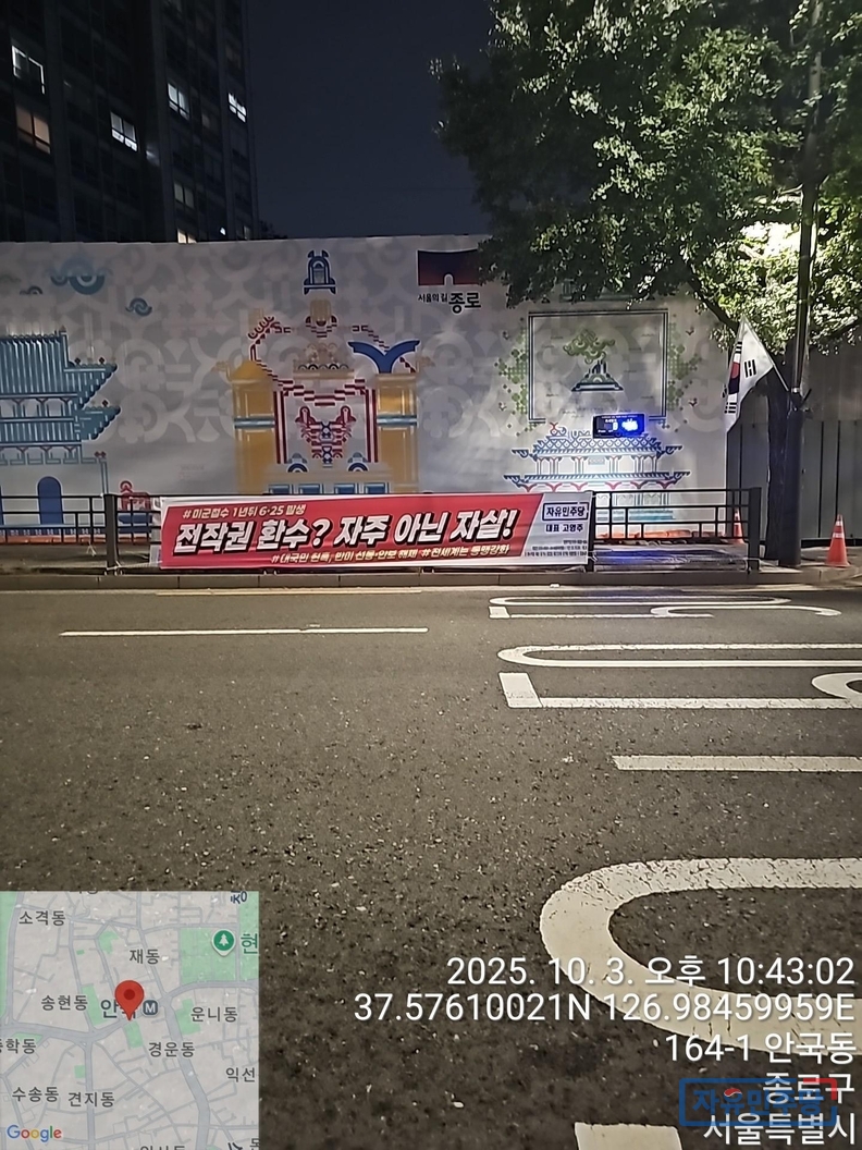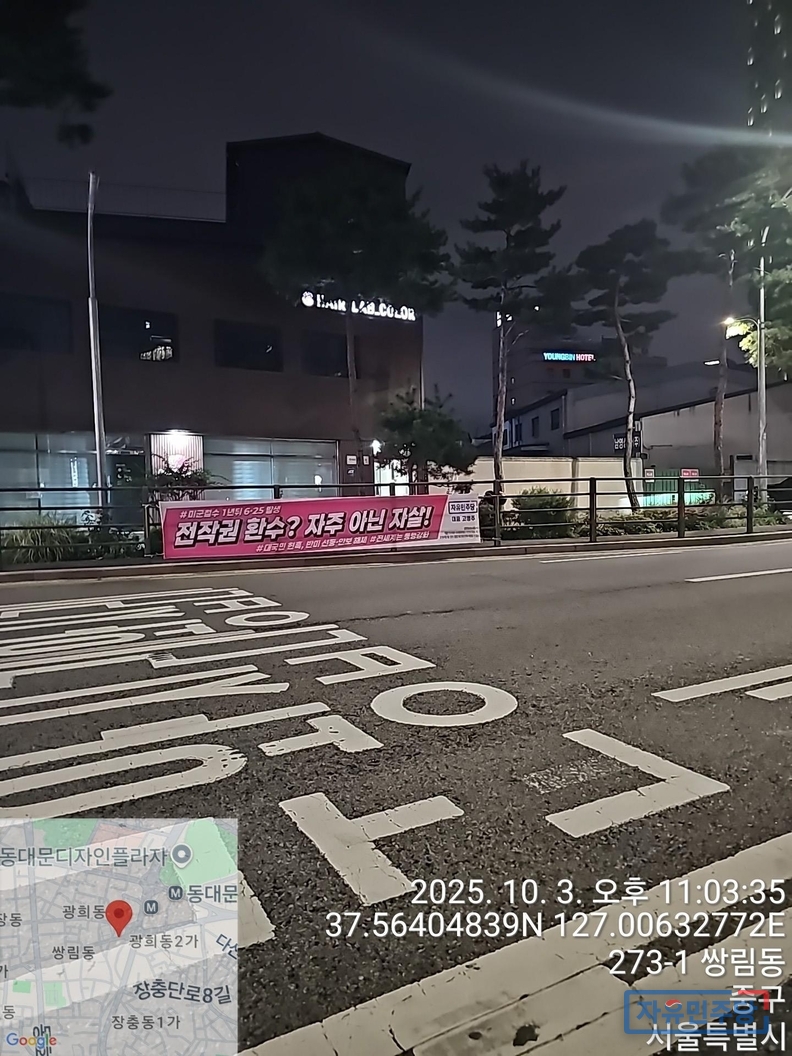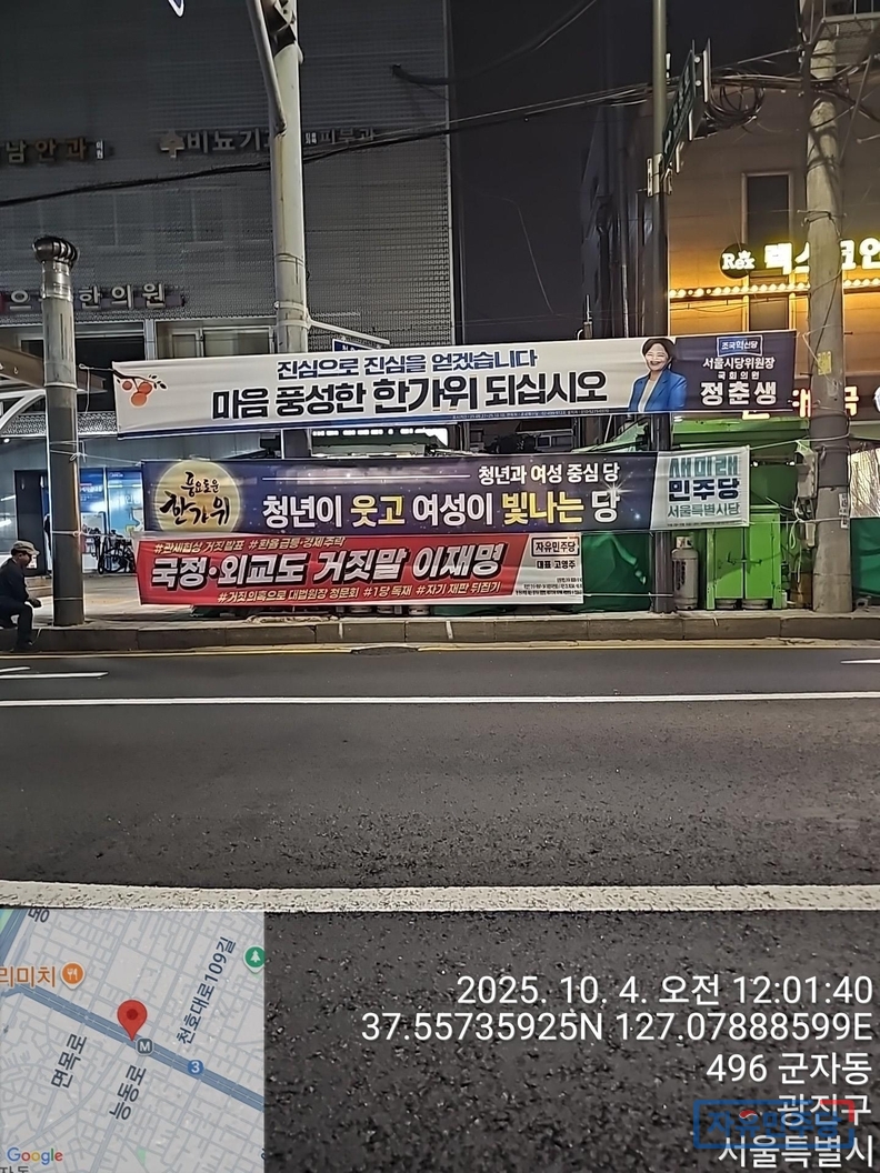 <서울 도심,강북 55곳 현수막> "국정.외교도 거짓말 이재명" "전작권 환수? 자주 아닌 자살!" 투하!