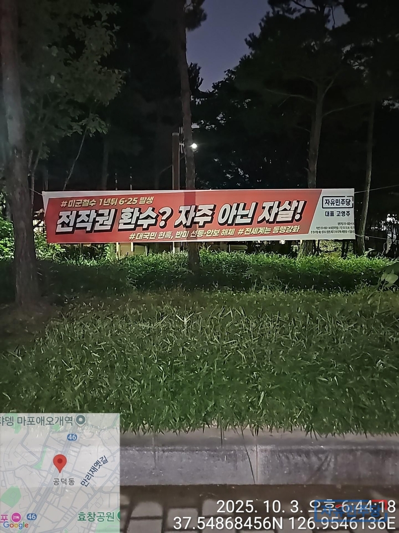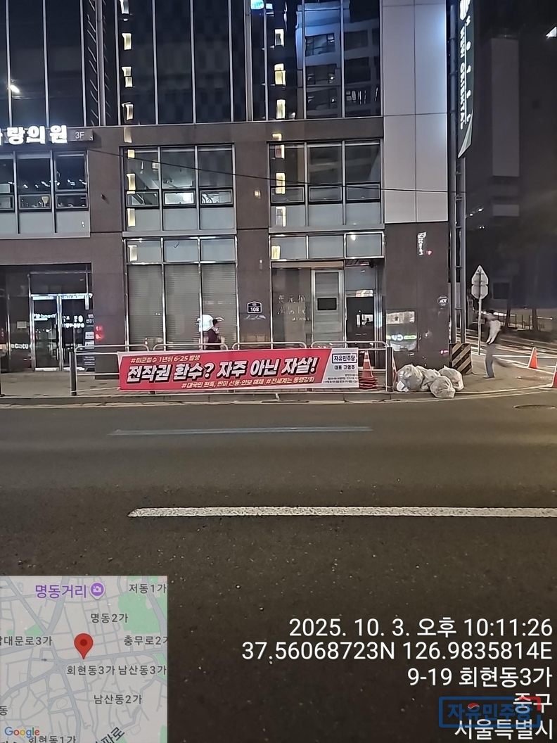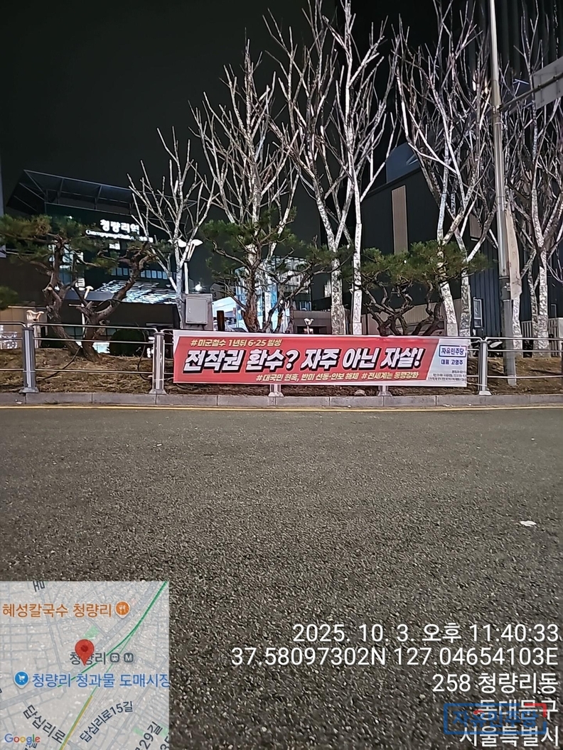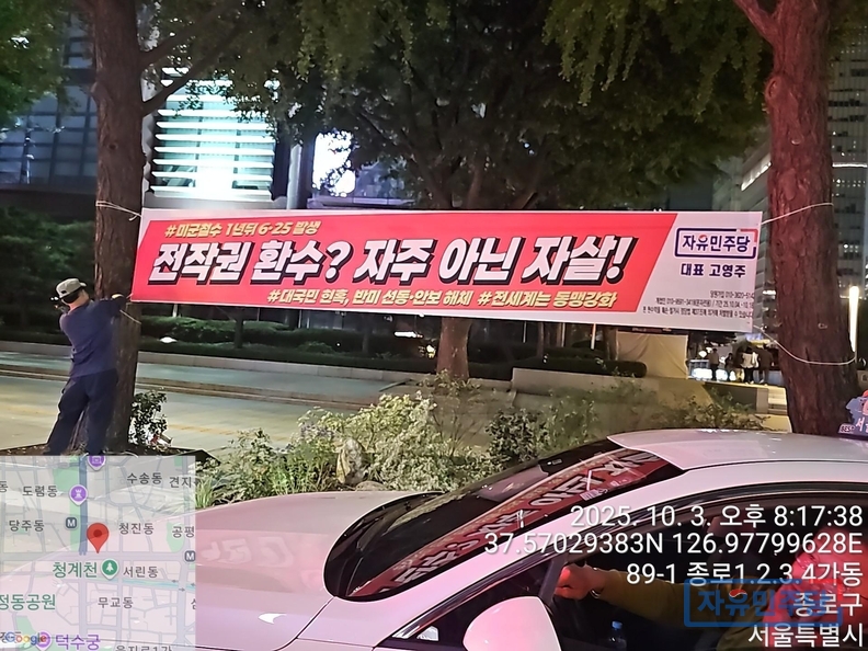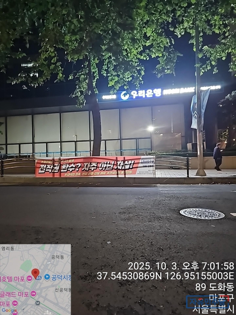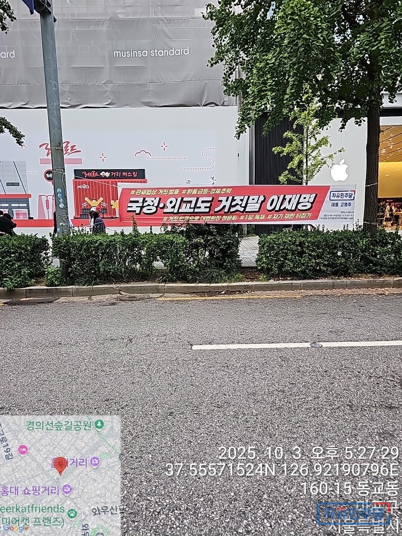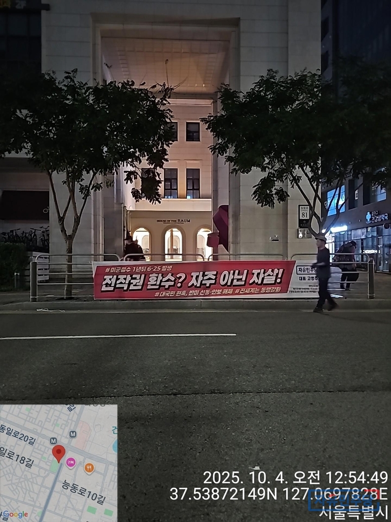 <서울 도심,강북 55곳 현수막> "국정.외교도 거짓말 이재명" "전작권 환수? 자주 아닌 자살!" 투하!