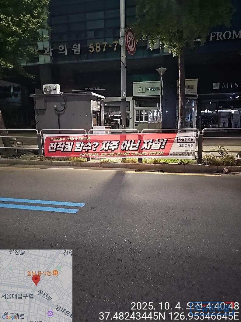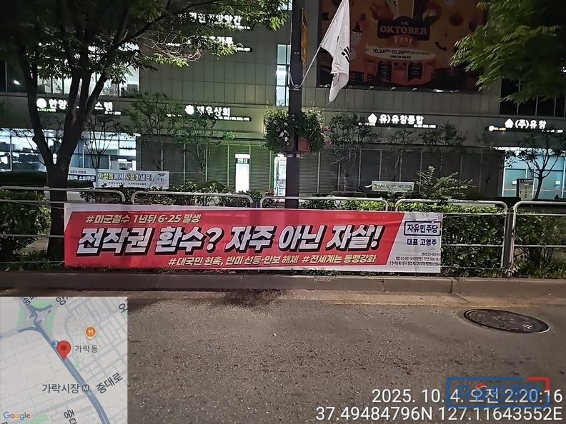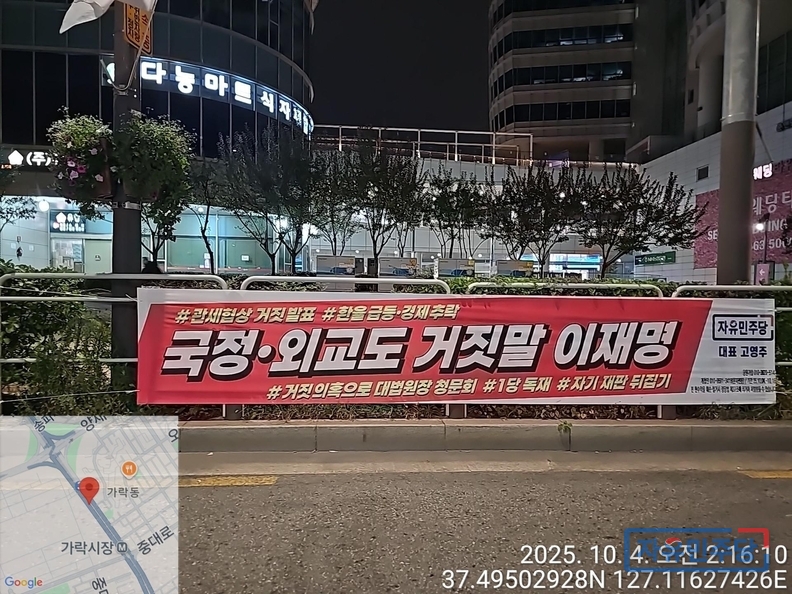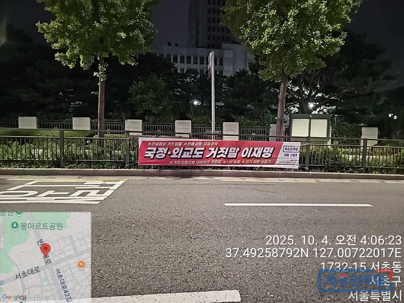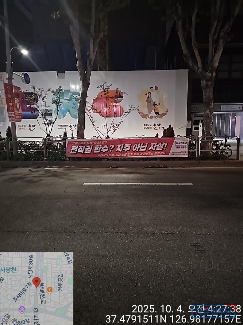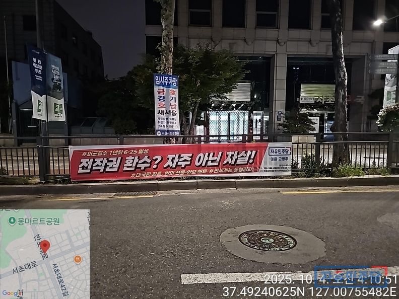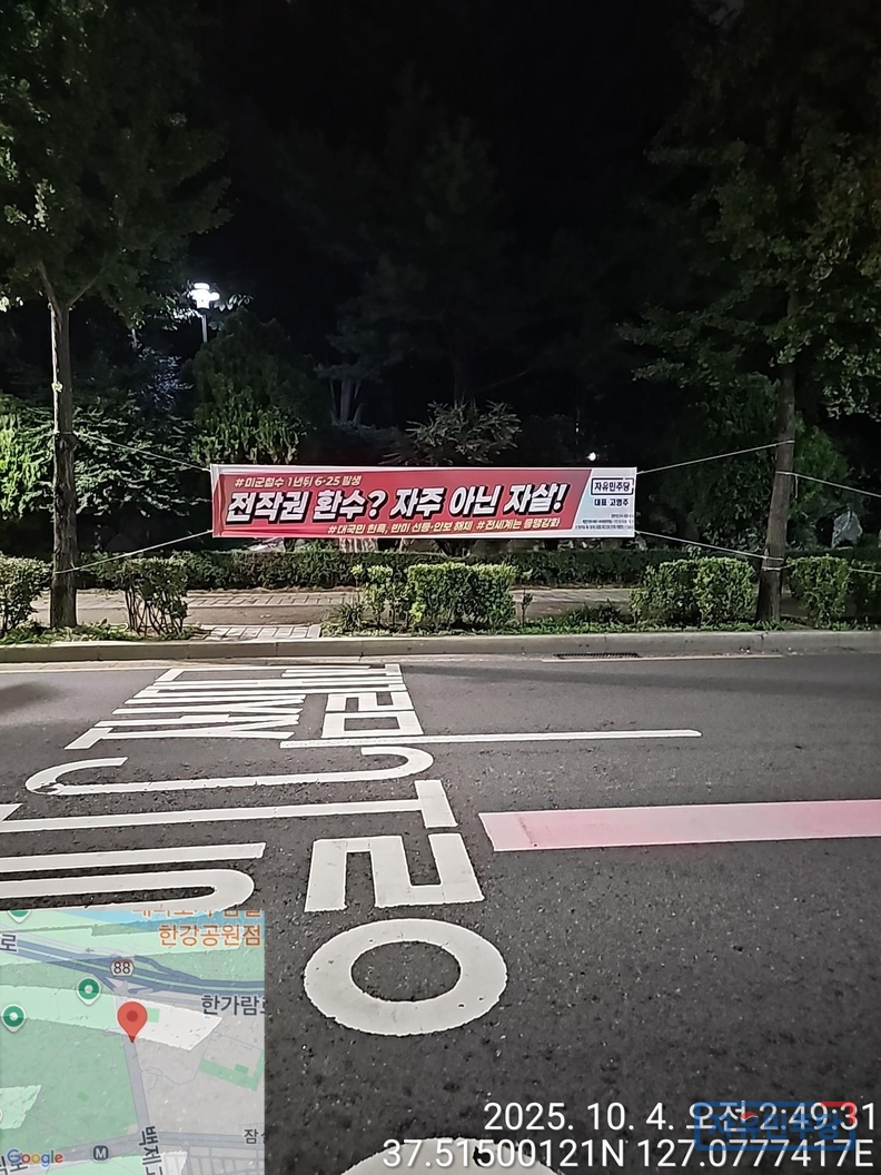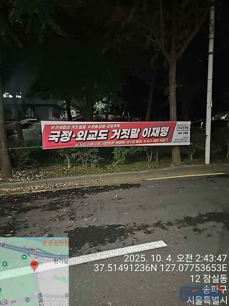 <서울 송파,강남,서초,동작,관악구 65곳 현수막> "국정.외교도 거짓말 이재명" "전작권 환수? 자주 아닌 자살!" 투하!
