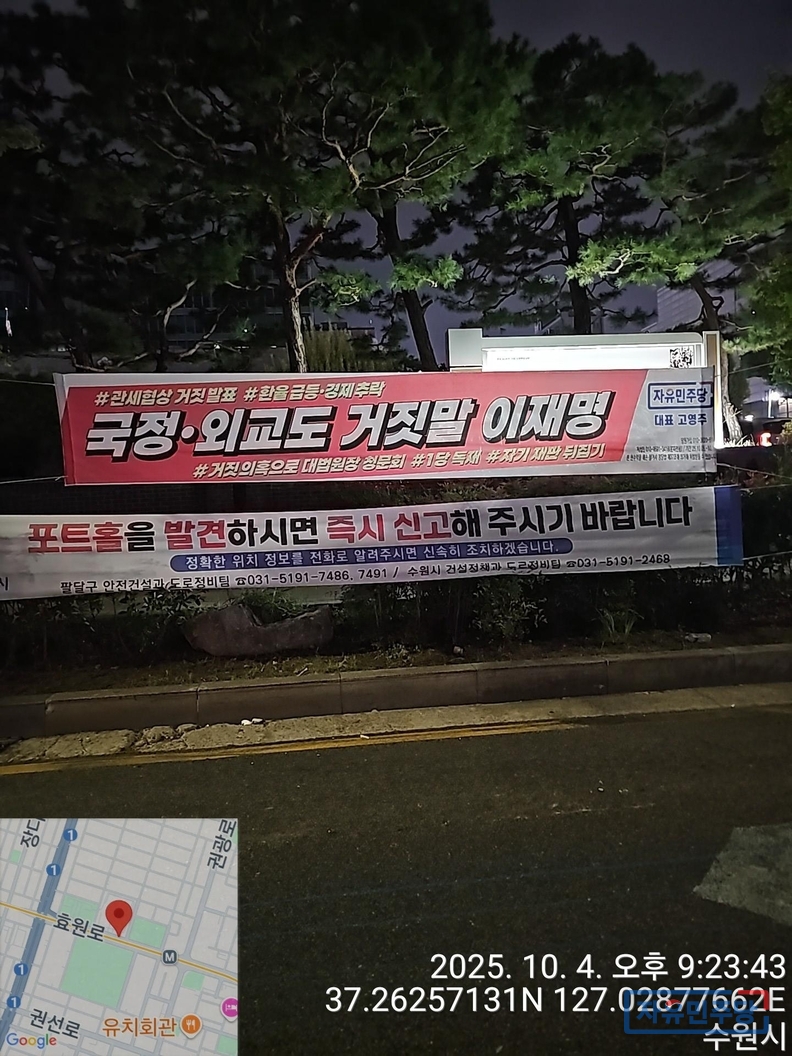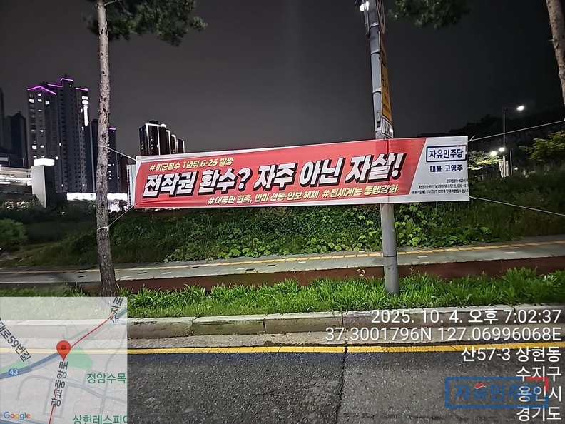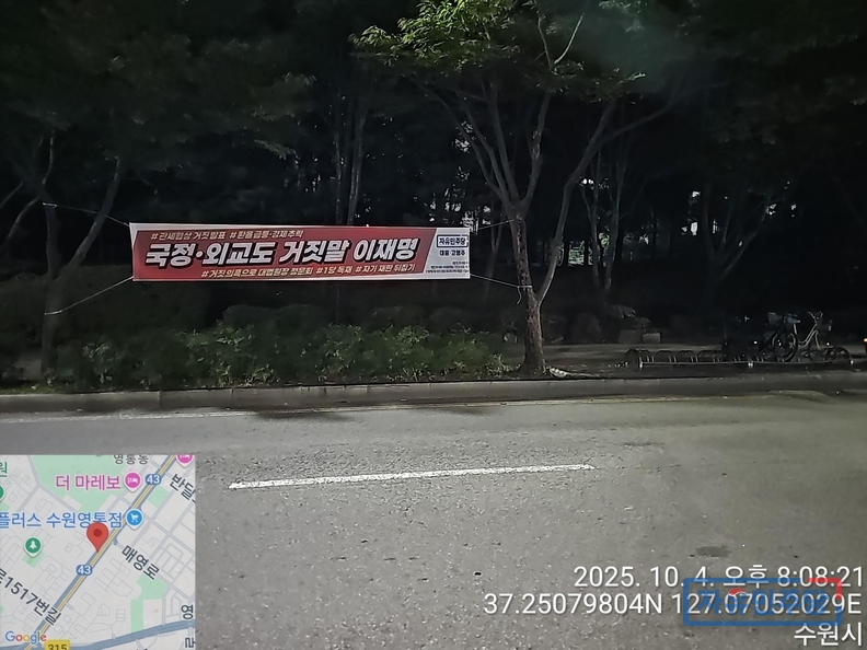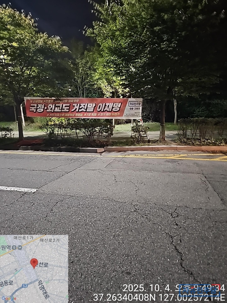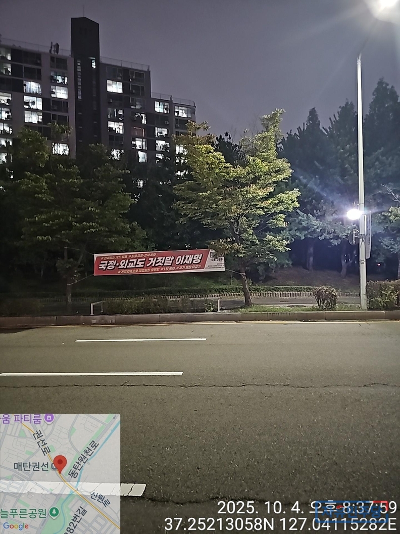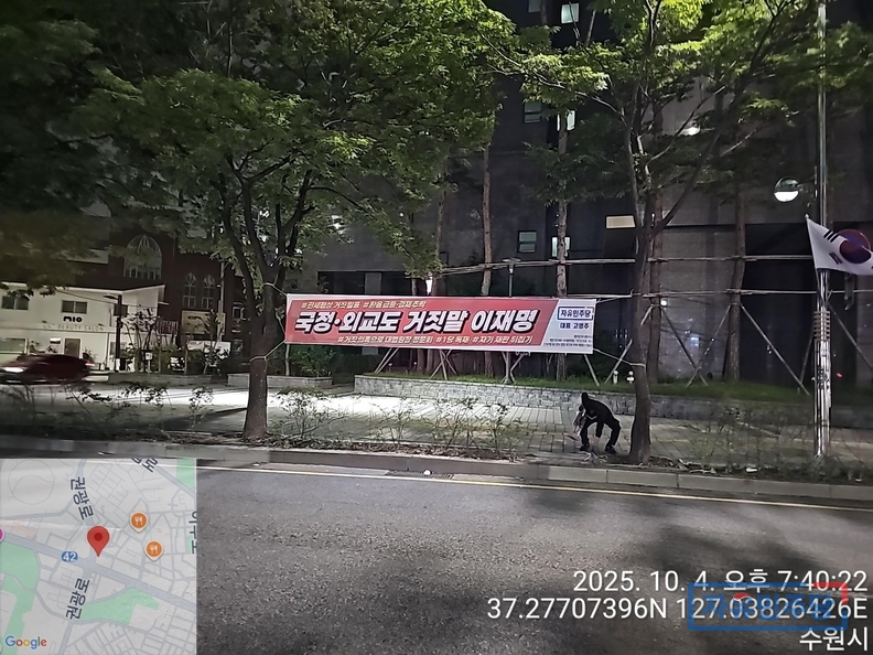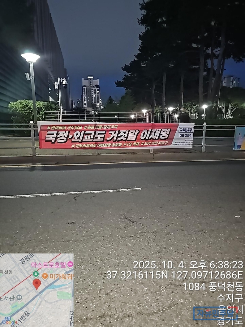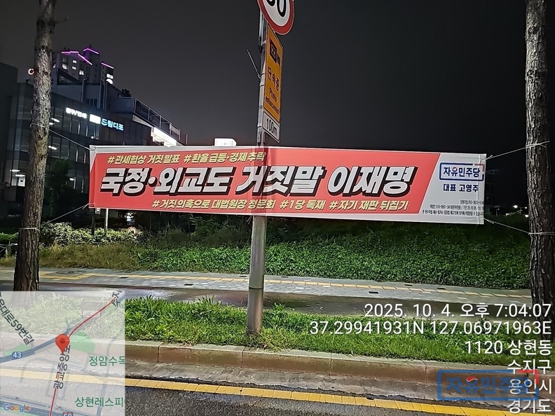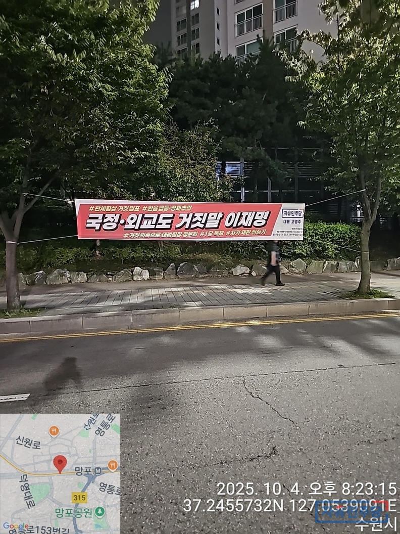 <경기수원.용인 28곳 현수막> "국정.외교도 거짓말 이재명" "전작권 환수? 자주 아닌 자살!" 투하!