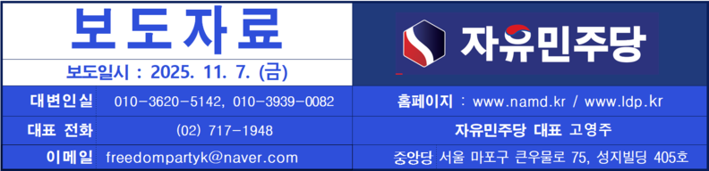 우리는 결코 물러서지 않을 것이다. 법 앞에는 모든 국민이 평등하다는 헌법의 한 문장을 지키기 위해, 자유대한민국을 지키기 위해 자유민주당은 끝까지 싸울 것이다.