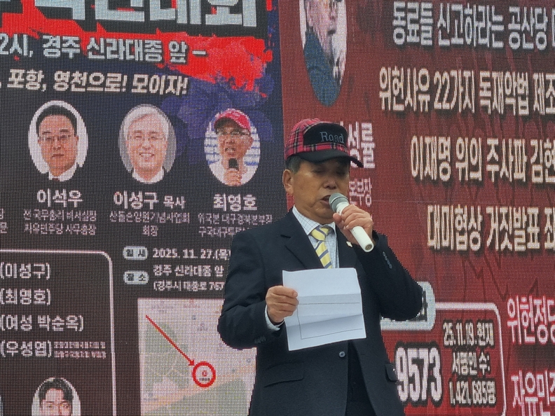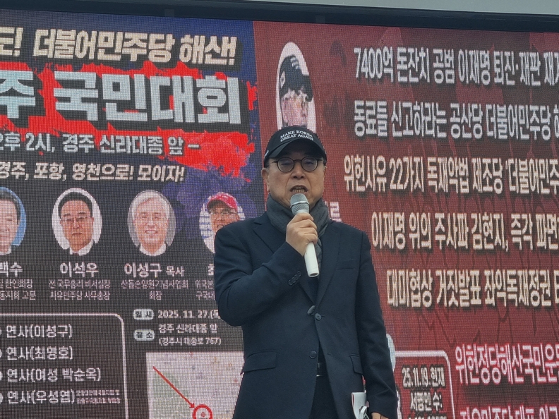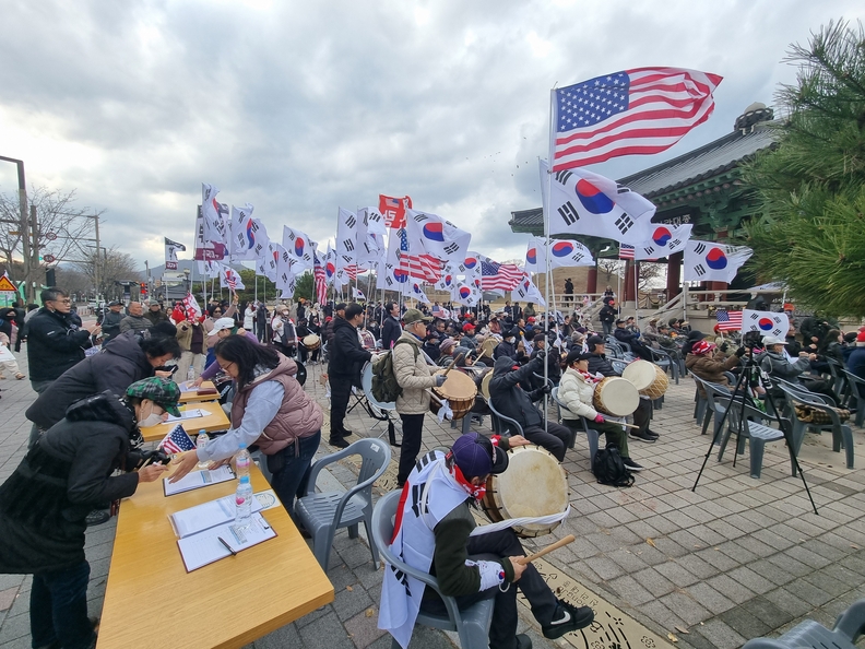 27일 경주 신라대종앞에서 개최된 국민대회는 경주 애국시민들이 대거 모이며 ‘구국 화랑의 도시’라는 상징성이 극대화되었다. 경주에는 시청 앞, 중심가, 신라대종 일대 등 약 30곳에 현수막이 나붙으며 시민 참여 분위기가 전반적으로 확산됐다.