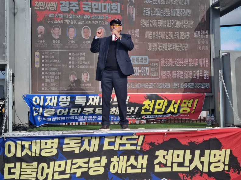 자유민주당 이석우 사무총장은 "이재명 독재를 끝내고, 대한민국을 정상 궤도로 돌리려는 국민 의지가 창원에서 경주로, 그리고 전국으로 번지고 있다"며 "이는 국민이 직접 나서는 '정치 혁명'이며 자유민주주의 회복을 위한 거대한 흐름이 이어져 가고 있음을 알리는 소리"라고 역설했다.