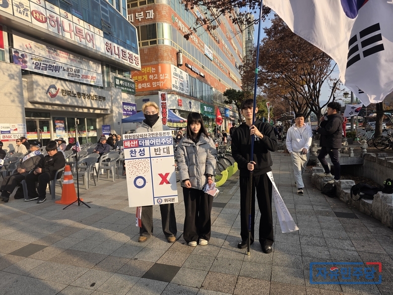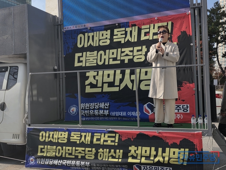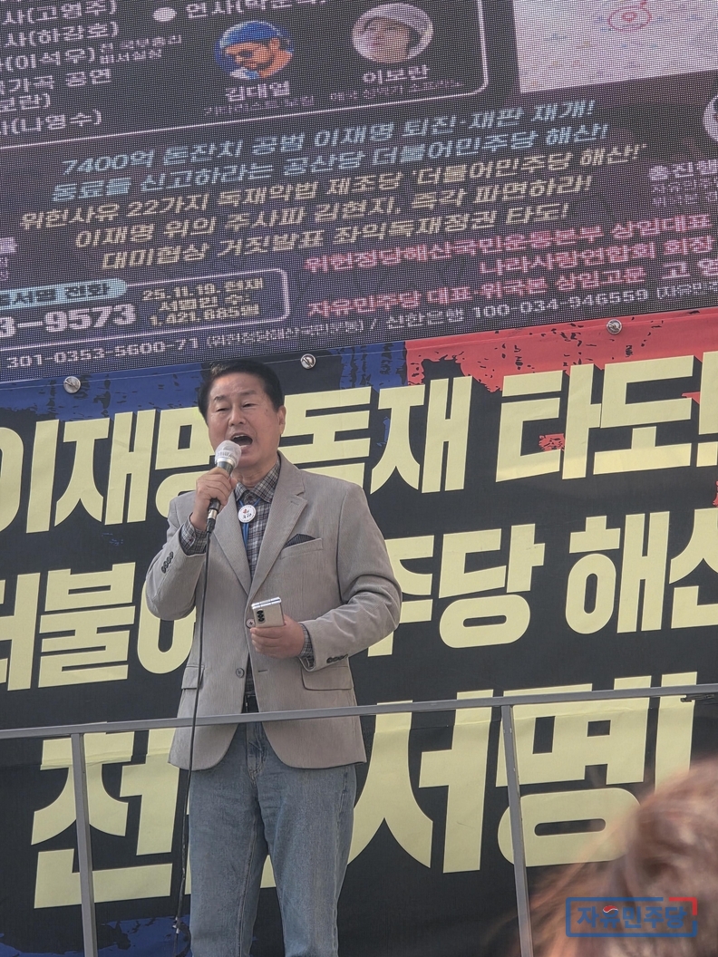 자유민주당과 위헌정당해산국민운동본부(위국본. 상임대표 이재춘 전 러시아 대사)가 개최한 이번 6, 7차 국민대회에는 경남·북 천여명의 애국시민들이 집결한 가운데 “이재명 퇴진·재판 재개!” "독재악법 자행 폭거 더불어민주당 해산!"를 요구하는 민심이 대거 표출됐다.