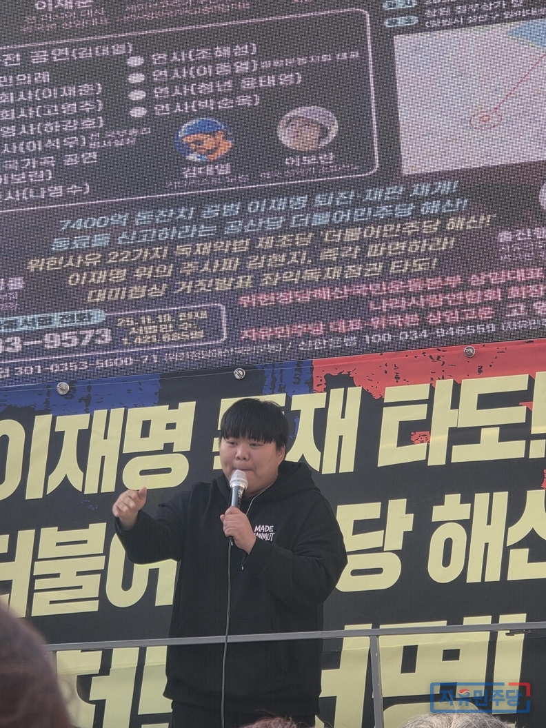 연사들은 최근 정권 배후의 "검찰 항소 포기" 논란과 함께 드러난 7400억 비자금 사태, 더불어민주당의 공산당식 '동료 신고제' 등을 강하게 규탄했다.