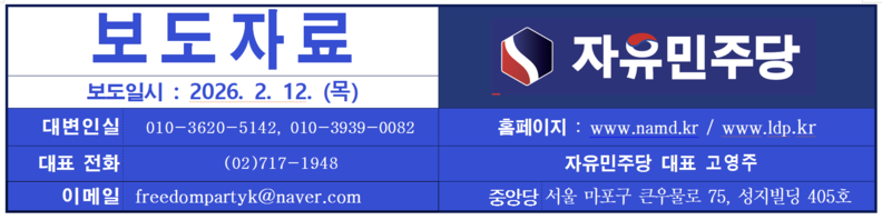 【자유민주당 성명】 -2026.2.12.(목)