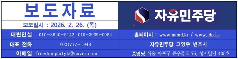 특히 지방선거와 관련해 "자유민주주의 체제를 지키겠다는 입장에서 뜻을 같이하는 세력과 협력할 것"이라며, "지금은 독재 정권의 폭주를 강력하게 막아야 할 시기"라고 주장했다. 그러면서 "국민의힘 내부의 '부역자'를 정리해야 같은 일이 반복되지 않는다"며 "현 정권과 거대당의 입법 독주와 권력 남용을 견제하는 것이 우선"이라고 강조했다.