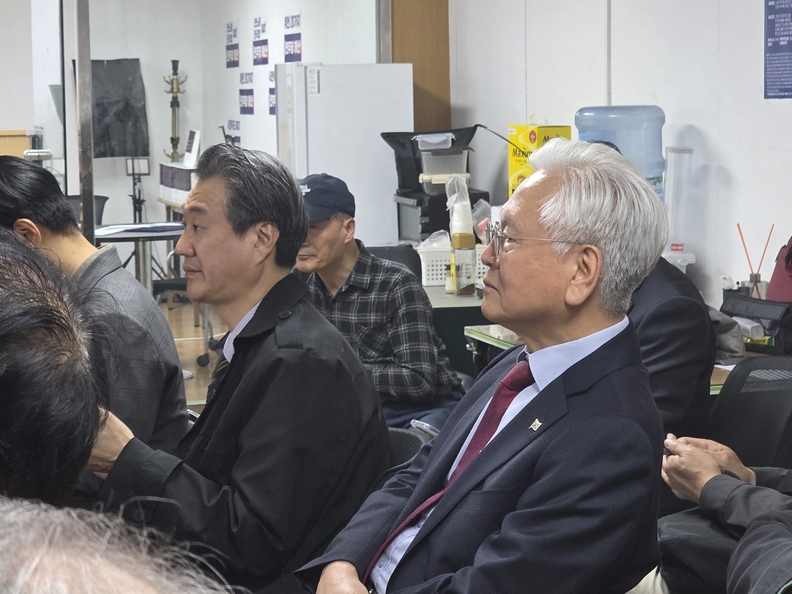 이날 회의에는 이재춘 위국본 상임대표, 자유민주당 고영주 변호사, 황대영 사무총장, 신동춘 위국본 집행위원장을 비롯한 약 30여 명의 주요 인사들이 참석해 자리를 가득 채웠습니다.